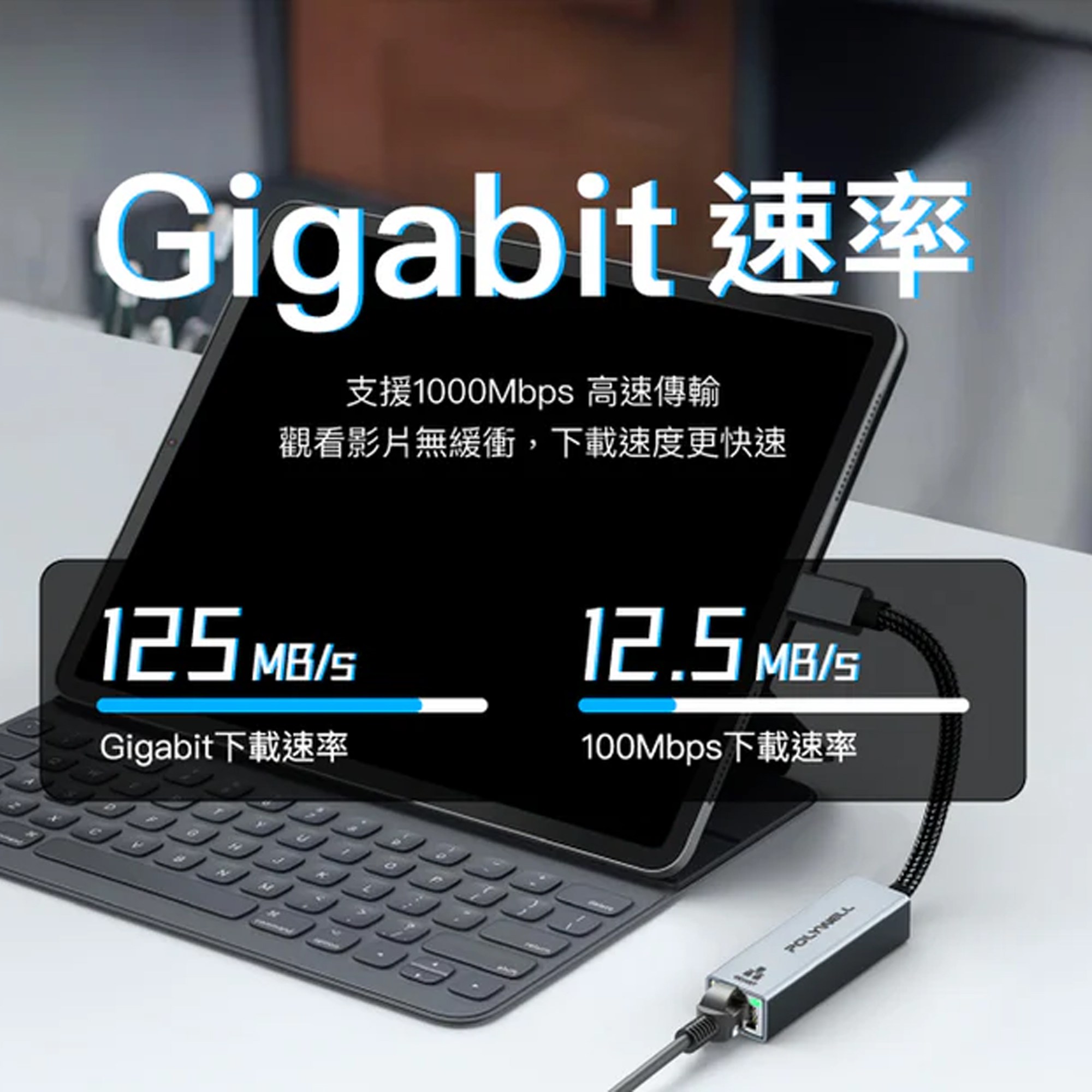 - 輕巧外接設計,隨插即用超方便,立即享有Gigabit等級的網路速度。