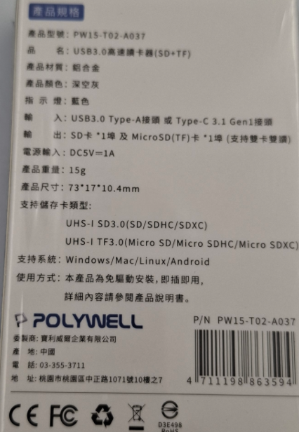 - 高速USB 3.0傳輸,POLYWELL讀卡機讓您快速傳輸檔案,節省寶貴的時間。