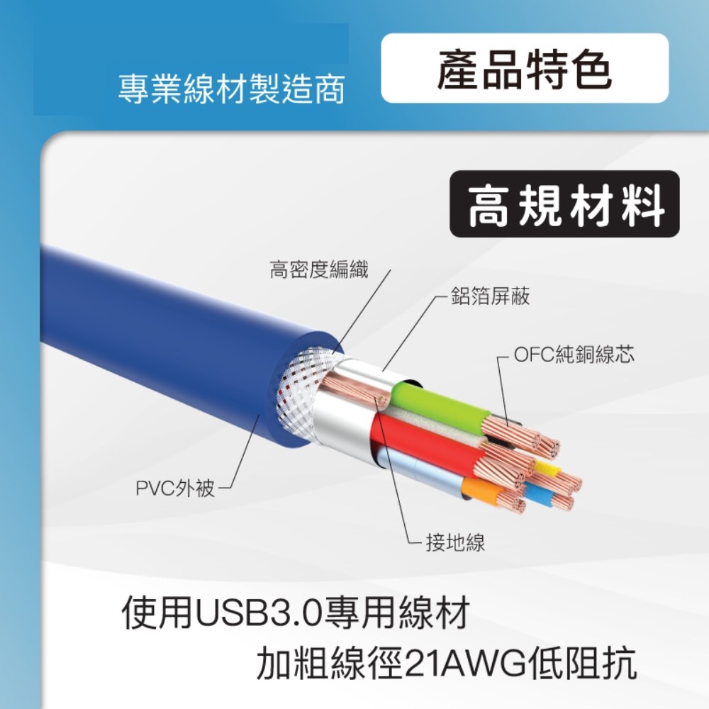 - 藍色外觀設計時尚美觀,0.5公尺長度適中,方便攜帶與收納。