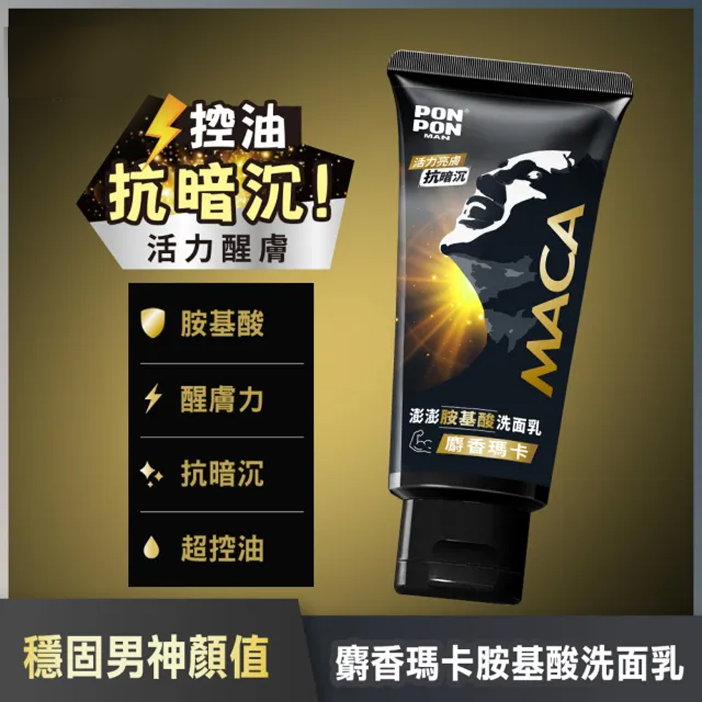 澎澎MAN胺基酸洗面乳,專為男士肌膚設計,蘊含麝香瑪卡精華,散發經典木質香調,提升男性魅力。胺基酸配方溫和潔淨,深層清潔毛孔髒污及多餘油脂,洗後清爽不緊繃。添加瑪卡根萃取,有助緊實肌膚,改善暗沉,重現活力光采。100g條裝,方便攜帶,隨時隨地呵護您的肌膚。告別油光、擺脫暗沉,展現自信神采。