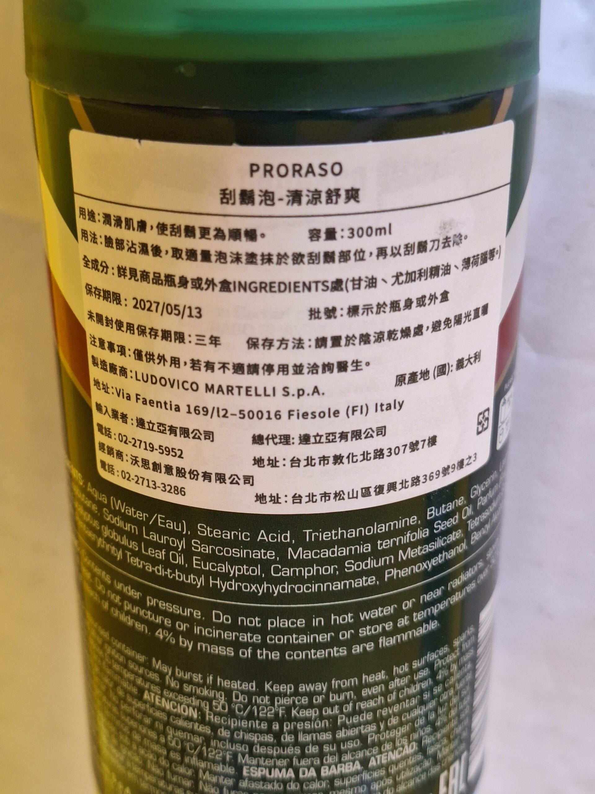 義大利 Proraso 刮鬍泡,沁涼薄荷綠標,為您帶來清涼舒適的刮鬍體驗。這款刮鬍泡富含尤加利樹油和薄荷醇,能有效軟化鬍鬚,讓刮鬍過程更順暢,同時為肌膚帶來清爽感受。300ml 的容量,足夠您長期使用。Proraso 是義大利知名品牌,以其高品質的刮鬍產品聞名,讓您在家也能享受專業級的刮鬍體驗。使用後,肌膚感覺清新舒暢,告別刮鬍後的乾燥和不適。