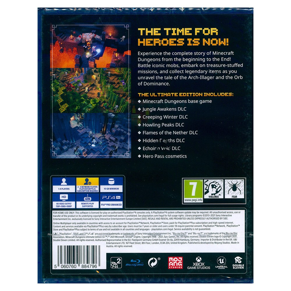 - 終極版包含所有六個DLC,提供完整的Minecraft Dungeons故事體驗,從頭到尾探索所有章節。