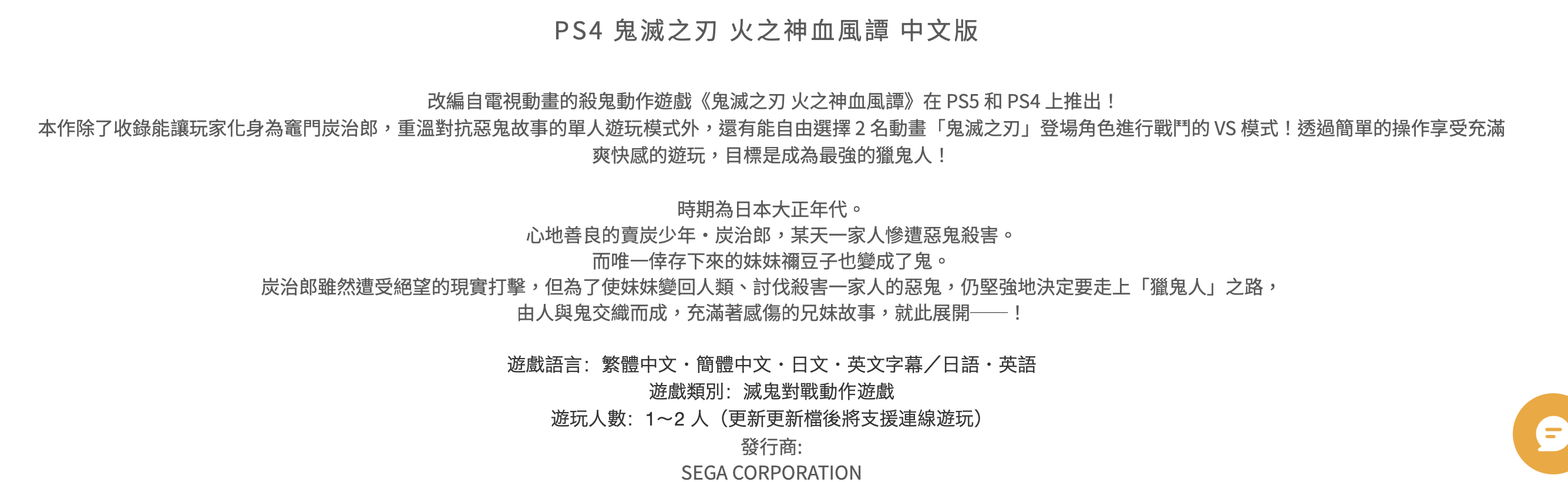 - 在PS4上享受流暢的遊戲體驗,精美畫面與特效,讓您沉浸在鬼滅之刃的世界中。