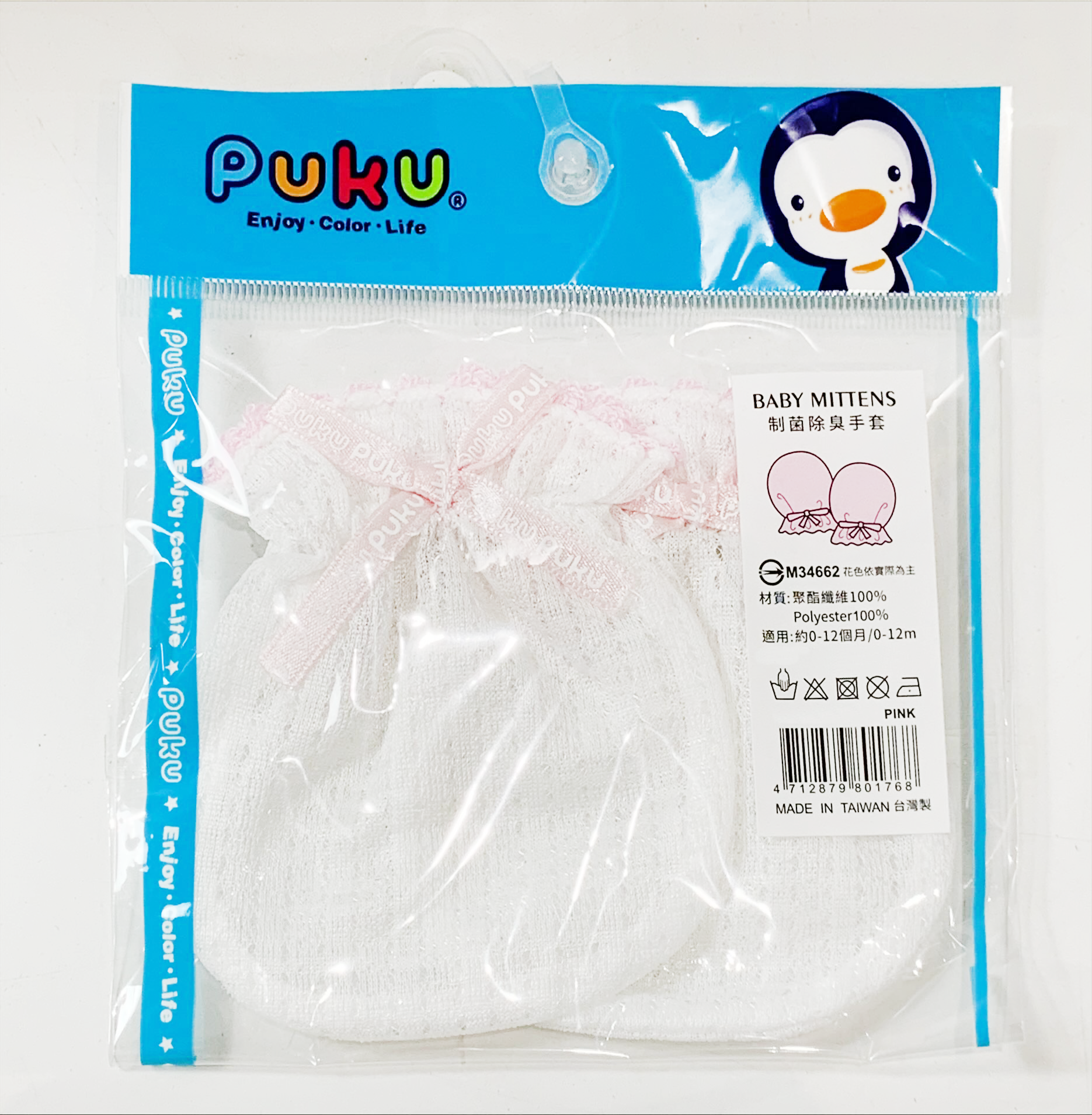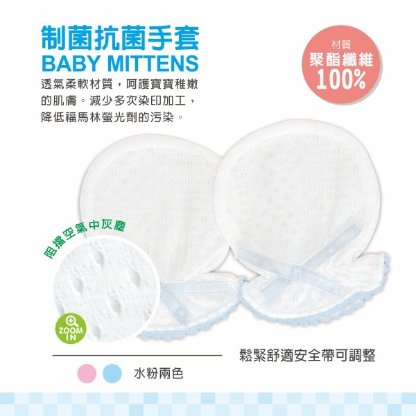 呵護寶寶嬌嫩肌膚,從細節開始!PUKU藍色企鵝制菌除臭手套,採用100%聚酯纖維,觸感柔軟透氣,給寶寶帶來舒適的穿戴體驗。獨特制菌除臭技術,有效抑制細菌滋生,呵護寶寶健康。精緻的粉色蕾絲滾邊搭配可愛的蝴蝶結,美觀又實用。適用於0~12個月的寶寶,讓小手免受抓傷,安心探索世界。台灣製造,品質保證,給寶寶最貼心的呵護。