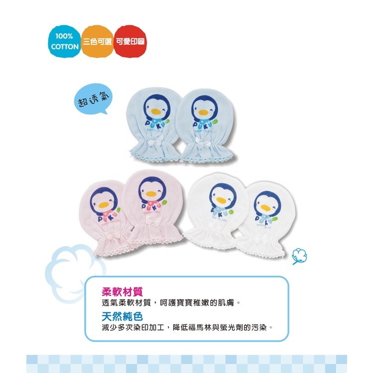 PUKU 藍色企鵝花邊紗布手套,呵護寶寶嬌嫩肌膚的必備良品。採用100%柔軟紗布材質,透氣舒適,給寶寶帶來溫柔觸感。精緻花邊設計,增添可愛氣息,讓寶寶愛不釋手。適用於0-12個月的寶寶,保護細嫩肌膚。粉色系更顯甜美,一雙入,經濟實惠,是送禮自用的最佳選擇。台灣製造,品質保證,讓您安心使用。