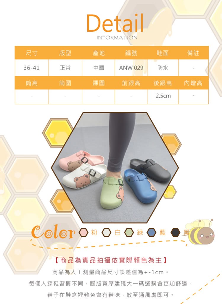 這款白色PVC小熊包頭拖鞋,可愛又舒適,是您居家休閒的最佳選擇。鞋面採用柔軟的PVC材質,觸感舒適,搭配萌趣的小熊造型,增添童趣。包頭設計,提供更好的保護,讓您在室內也能安心行走。鞋底防滑耐磨,安全可靠,2.5公分的後跟高度,提供適度的支撐。無論是居家穿著還是外出散步,這款拖鞋都能讓您感受到舒適與時尚。