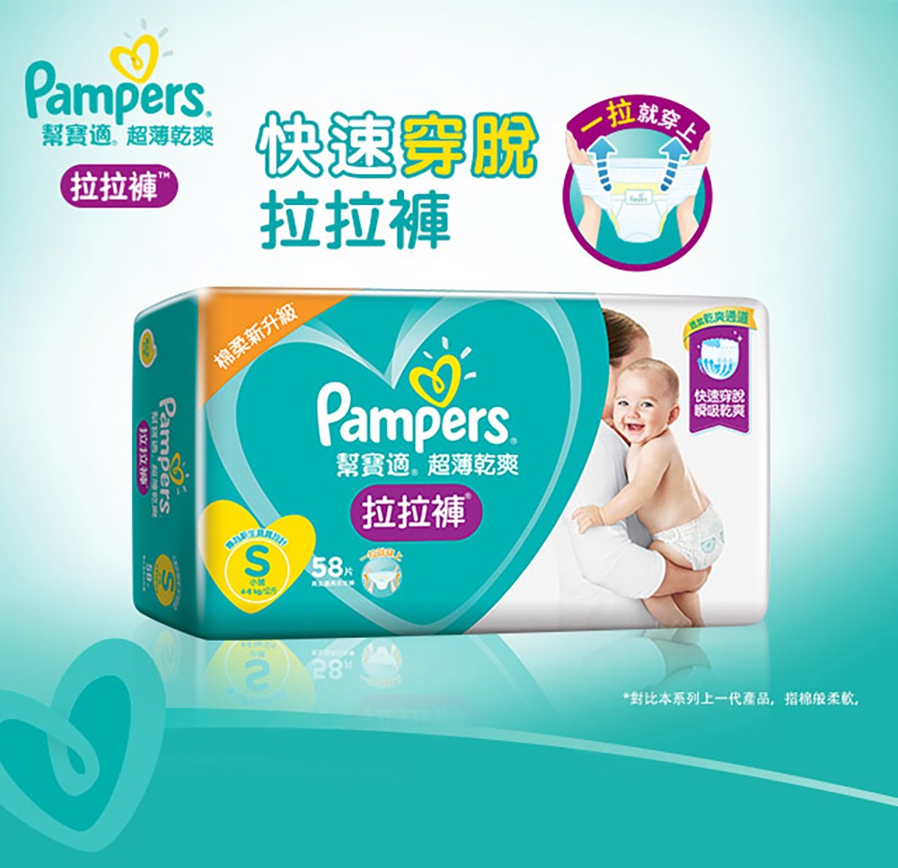 - 幫寶適拉拉褲採用柔軟材質,讓寶寶穿著時倍感舒適,活動自如,玩耍更開心。