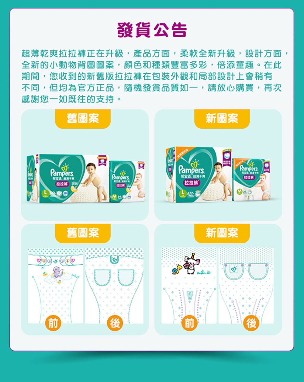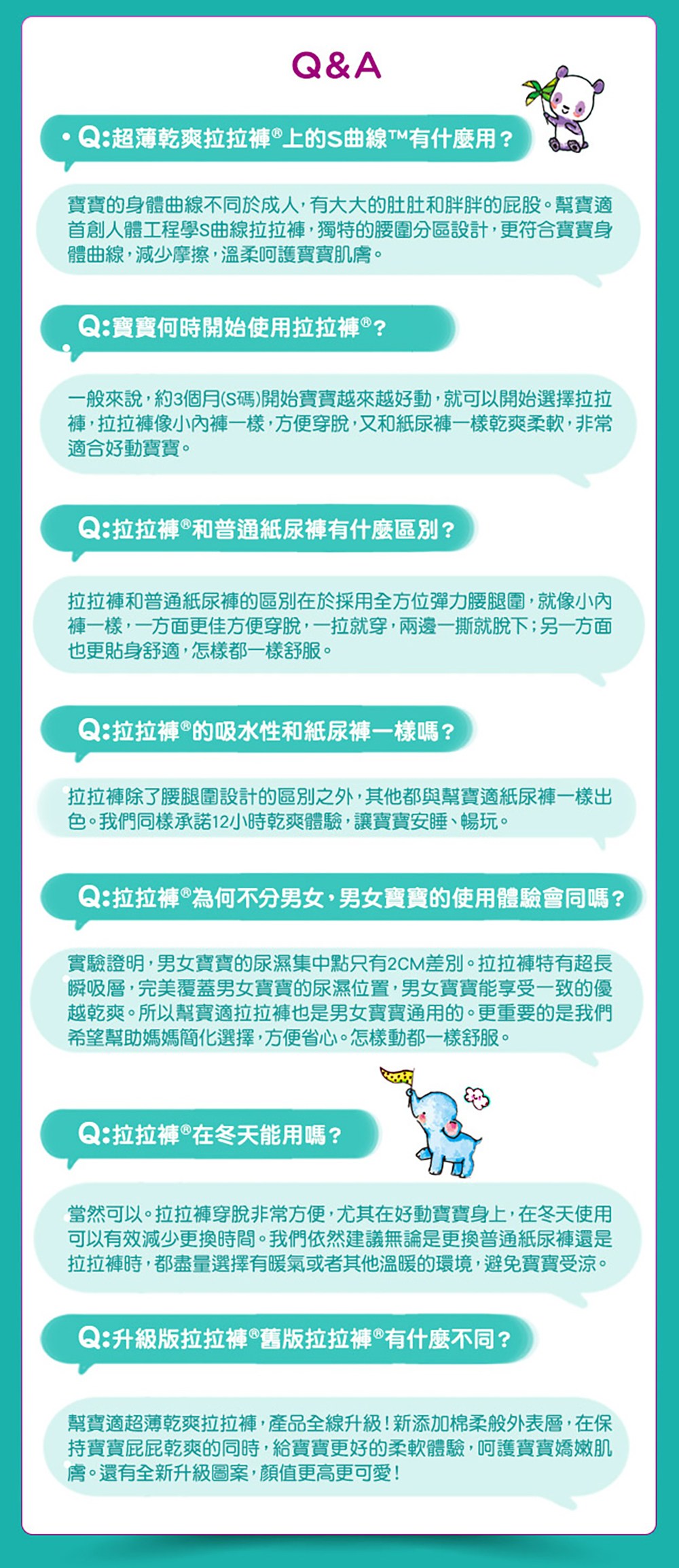 - 獨特拉拉褲設計,一拉就穿上,方便快捷,讓媽媽輕鬆幫寶寶更換尿布,省時省力。