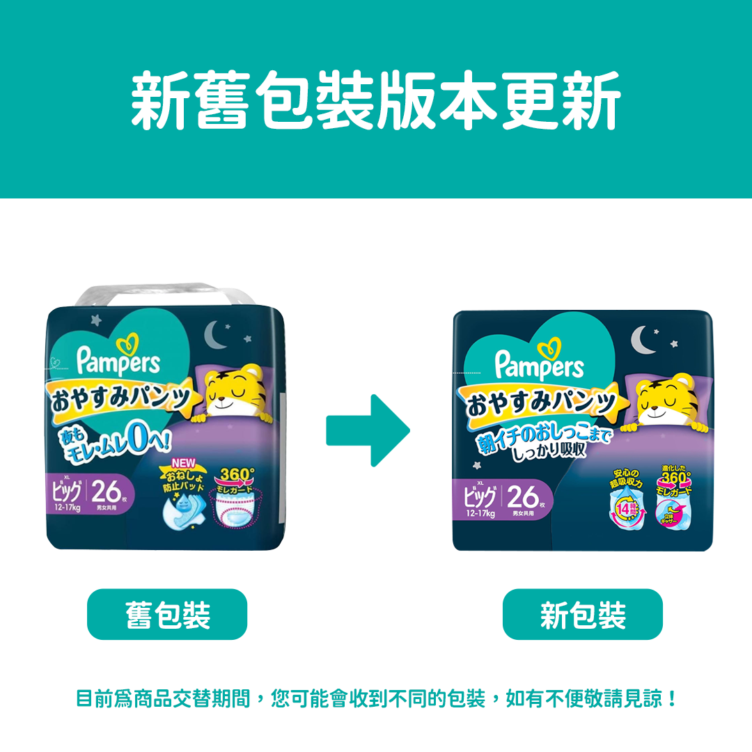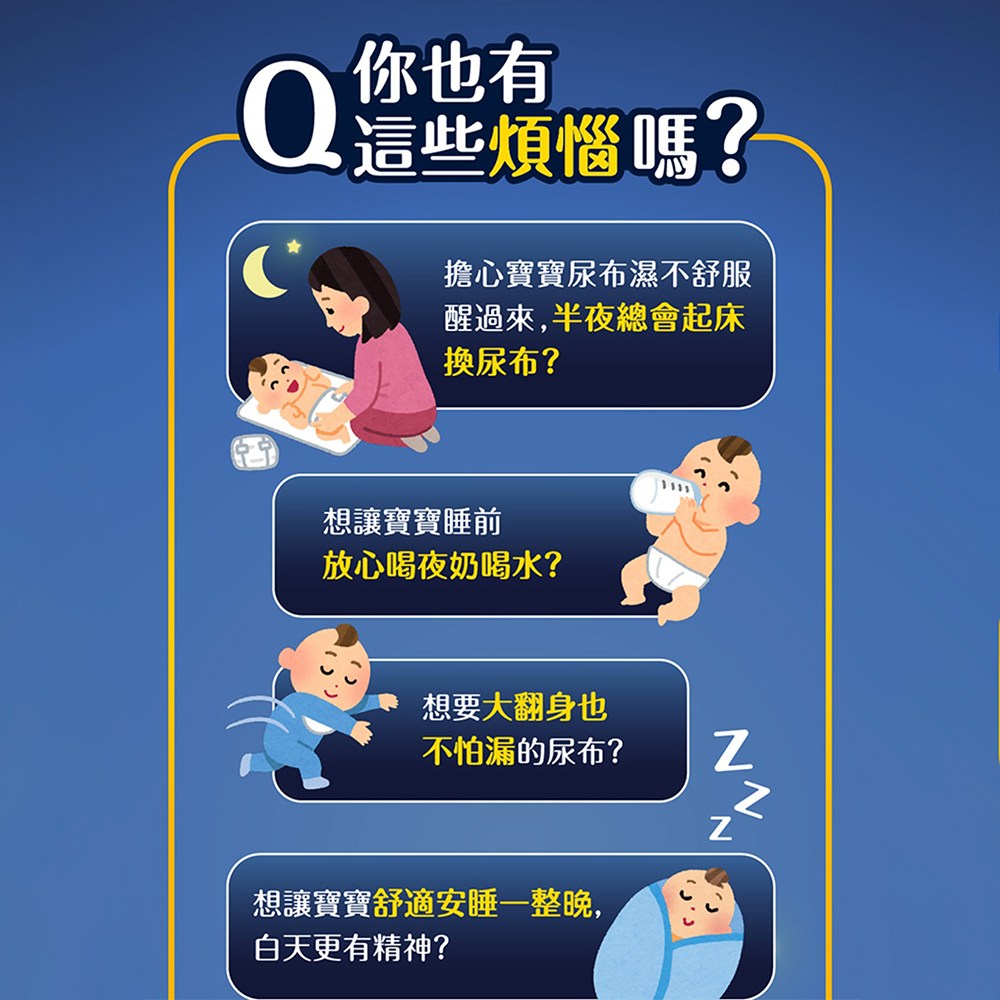 - 超強吸收力,長達14小時乾爽舒適,整夜安睡,減少更換次數,媽媽更輕鬆。