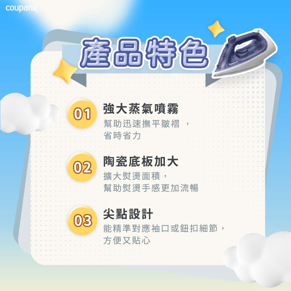 - 國際牌蒸氣熨斗,輕鬆熨燙各式衣物,讓您每天穿著平整有型的服裝,展現自信與專業。