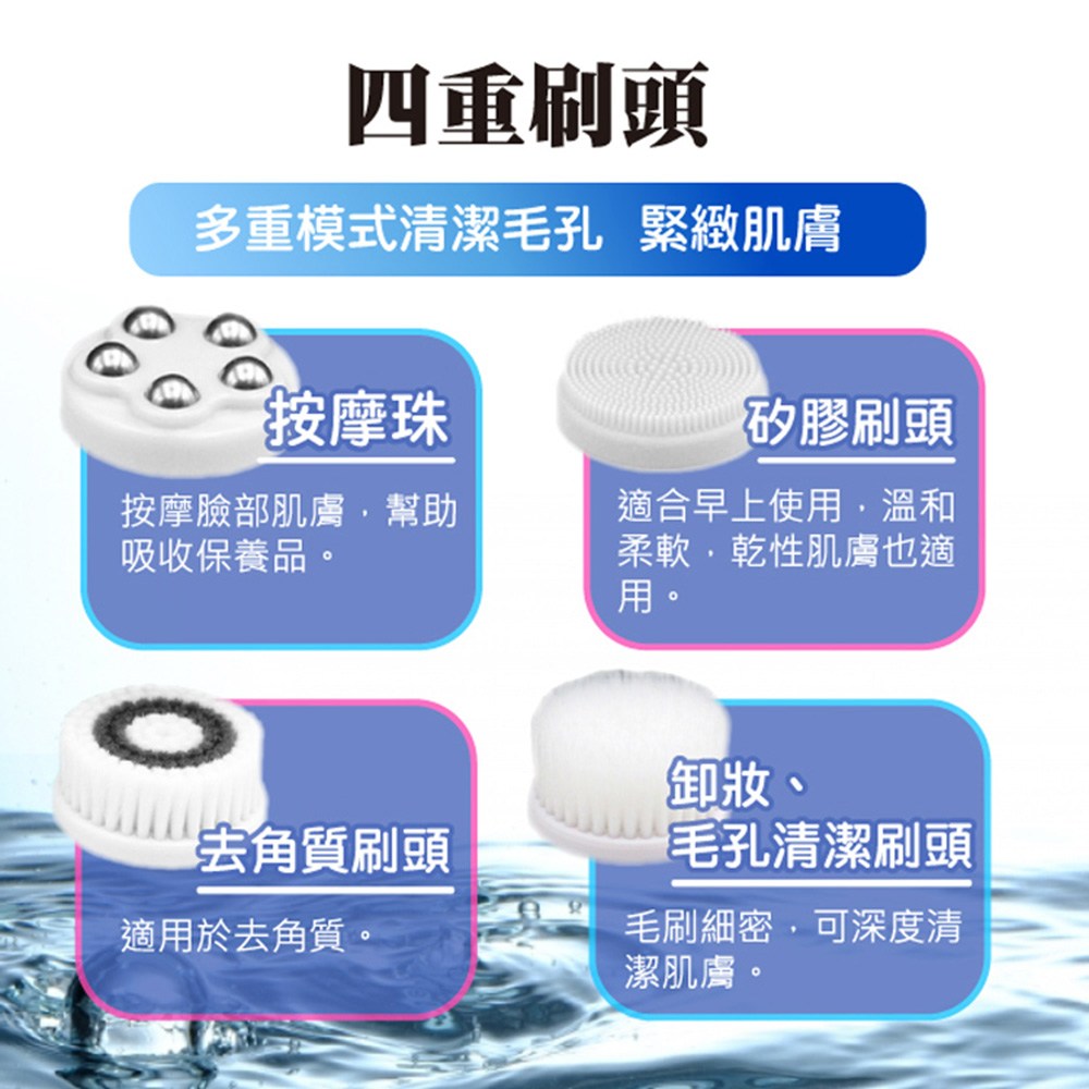 這款4合1電動旋轉防水洗臉機潔顏刷(型號K-342W)是您日常護膚的理想選擇。它配備長毛刷頭、短毛刷頭、矽膠刷頭和按摩珠,滿足您不同的清潔和護理需求。無論是深層清潔毛孔、溫和去除角質,還是舒緩按摩面部肌膚,都能輕鬆實現。純潔白的設計簡約時尚,USB充電方式方便快捷,讓您隨時隨地享受專業級的潔面體驗。此外,它還具備防水功能,讓您在浴室也能安心使用。
