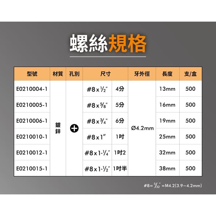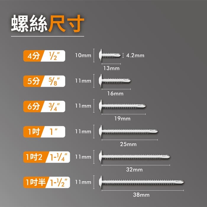- 採用台灣優質鋼材,硬度高、耐磨損,確保螺絲穩固耐用,不易滑牙變形。