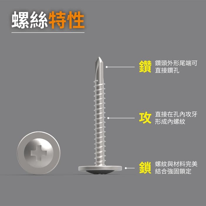- 百利世自鑽螺絲,輕鬆穿透金屬,施工更快捷方便,大幅節省您的寶貴時間。