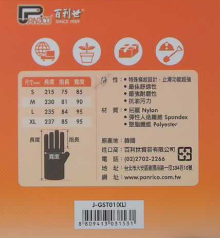 Panrico 百利世超強止滑耐磨手套。這款XL尺寸的手套(23.7 x 8.5 x 9.5cm)採用耐用的尼龍、彈性人造纖維和聚酯纖維混紡製成,確保長時間的舒適性和靈活性。獨特的胎紋設計增強了止滑效果,讓您在各種工作環境中都能安全操作。無論是工廠作業、機械維修還是園藝勞動,這雙手套都能有效保護您的雙手,同時提供出色的耐磨性能。一雙入,是您工作時不可或缺的安全夥伴。