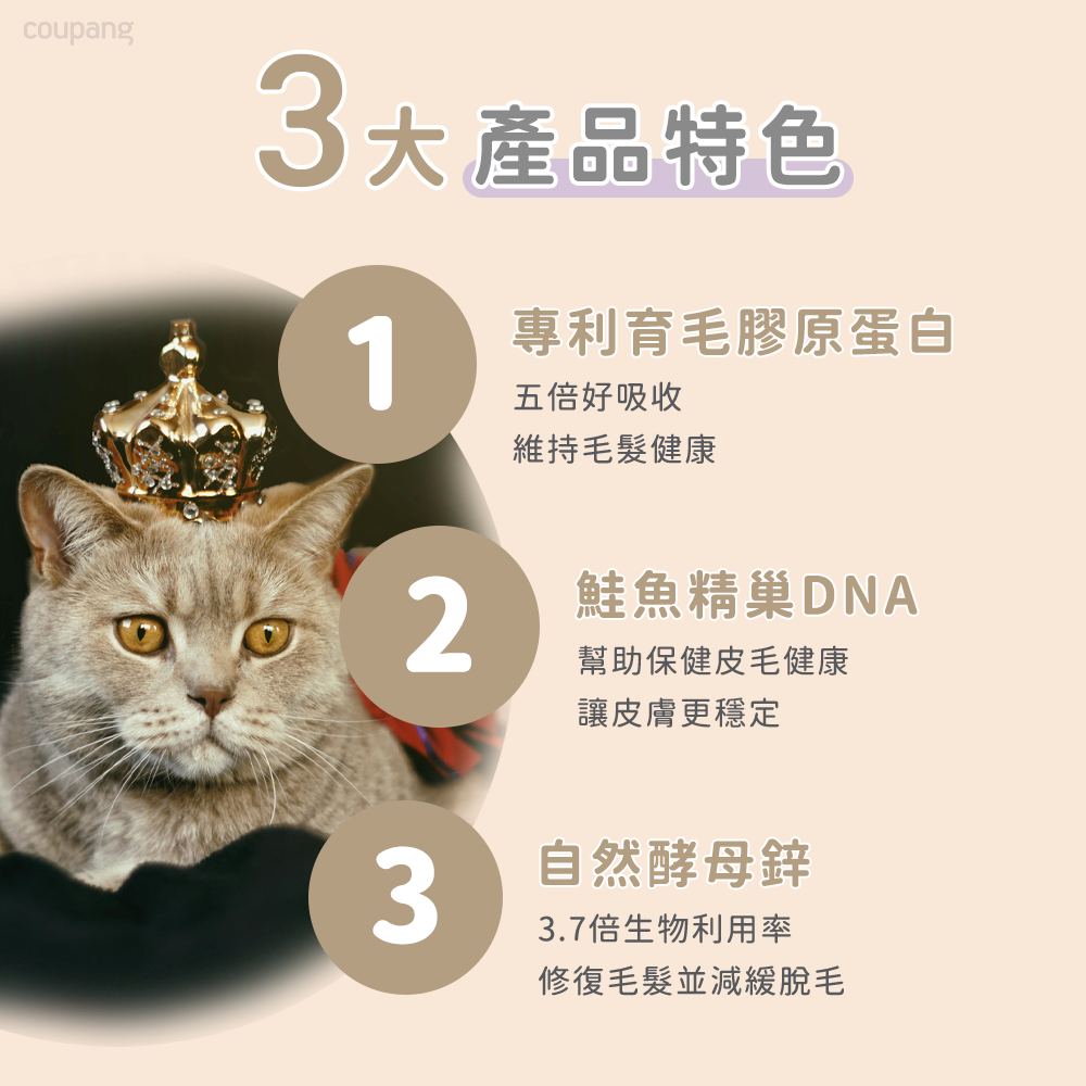 - 添加多種維生素與礦物質,全方位滋養毛囊,促進毛髮生長,讓毛孩毛髮更強韌。
