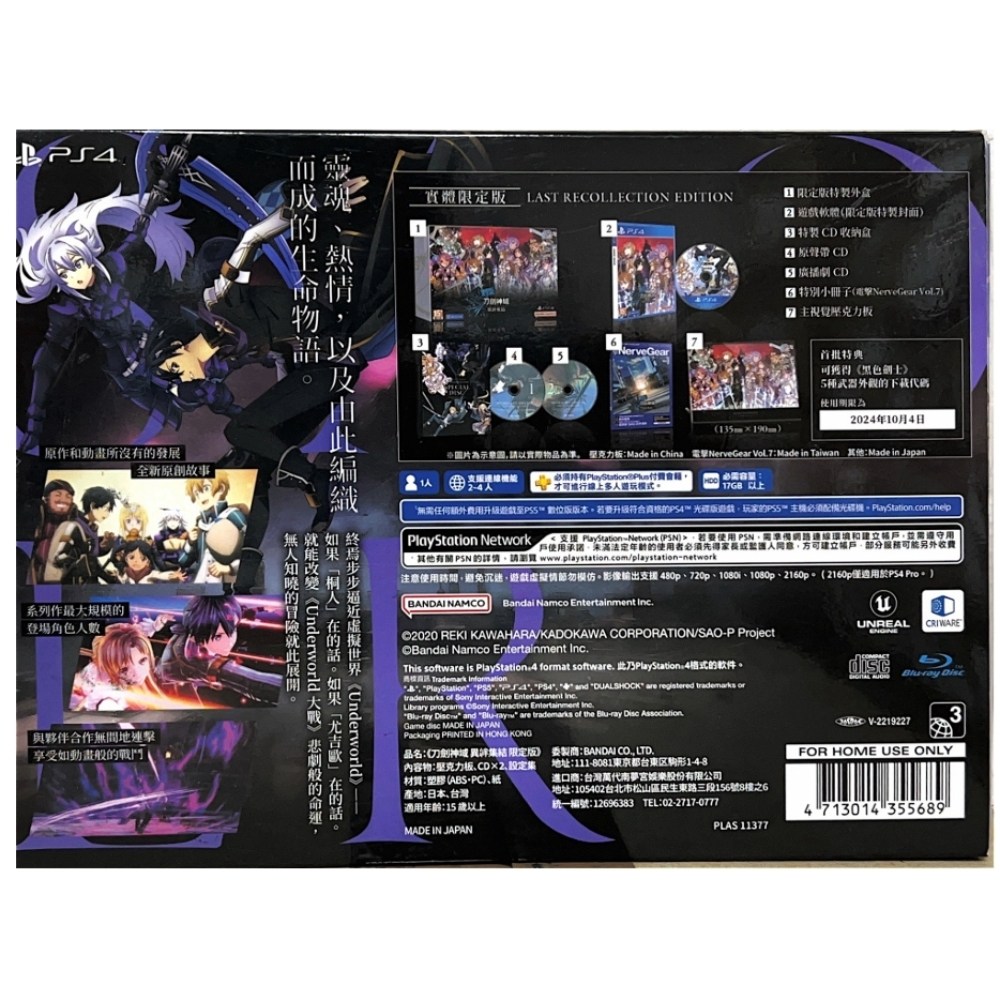 - 體驗刀劍神域異絆集結限定版,享受獨家特製外盒與遊戲軟體的精美封面設計。