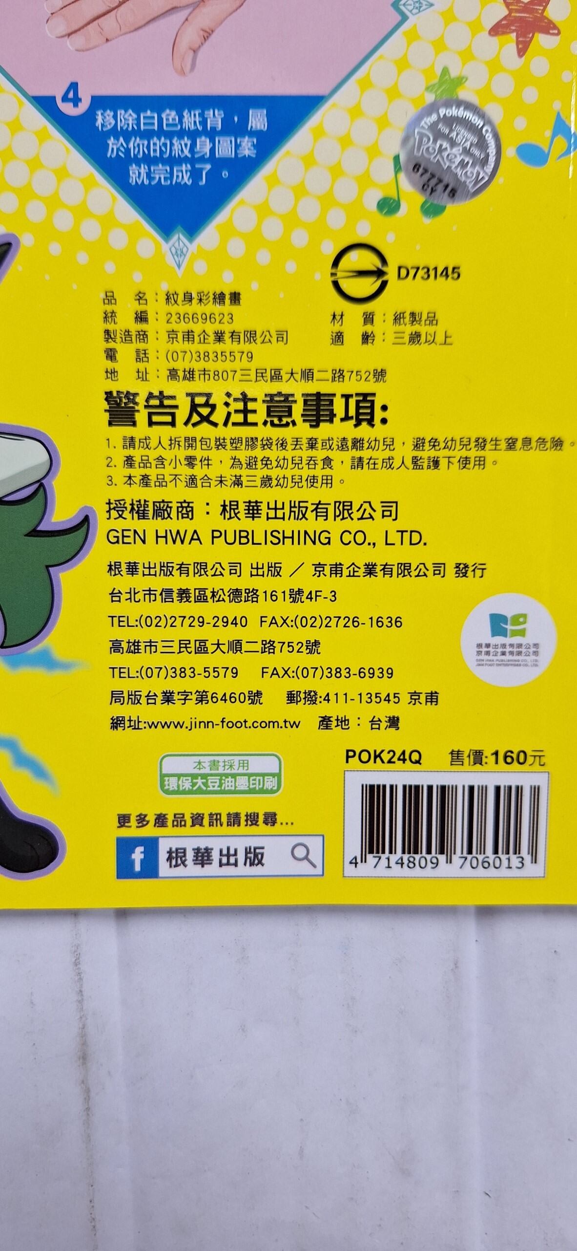 這本寶可夢NEW紋身彩繪畫是專為4~8歲兒童設計的趣味產品,尺寸為29.4 x 21公分,內含豐富的寶可夢角色紋身貼紙和彩繪頁面,讓孩子們可以盡情發揮創意,打造獨一無二的紋身造型,確保使用安全,家長可以放心讓孩子們使用。紋身貼紙易於使用,只需簡單步驟即可轉印到皮膚上,不易脫落,讓孩子們長時間享受樂趣。此外,彩繪頁面還能培養孩子們的色彩認知和繪畫技巧,是一款兼具娛樂性和教育意義的產品。