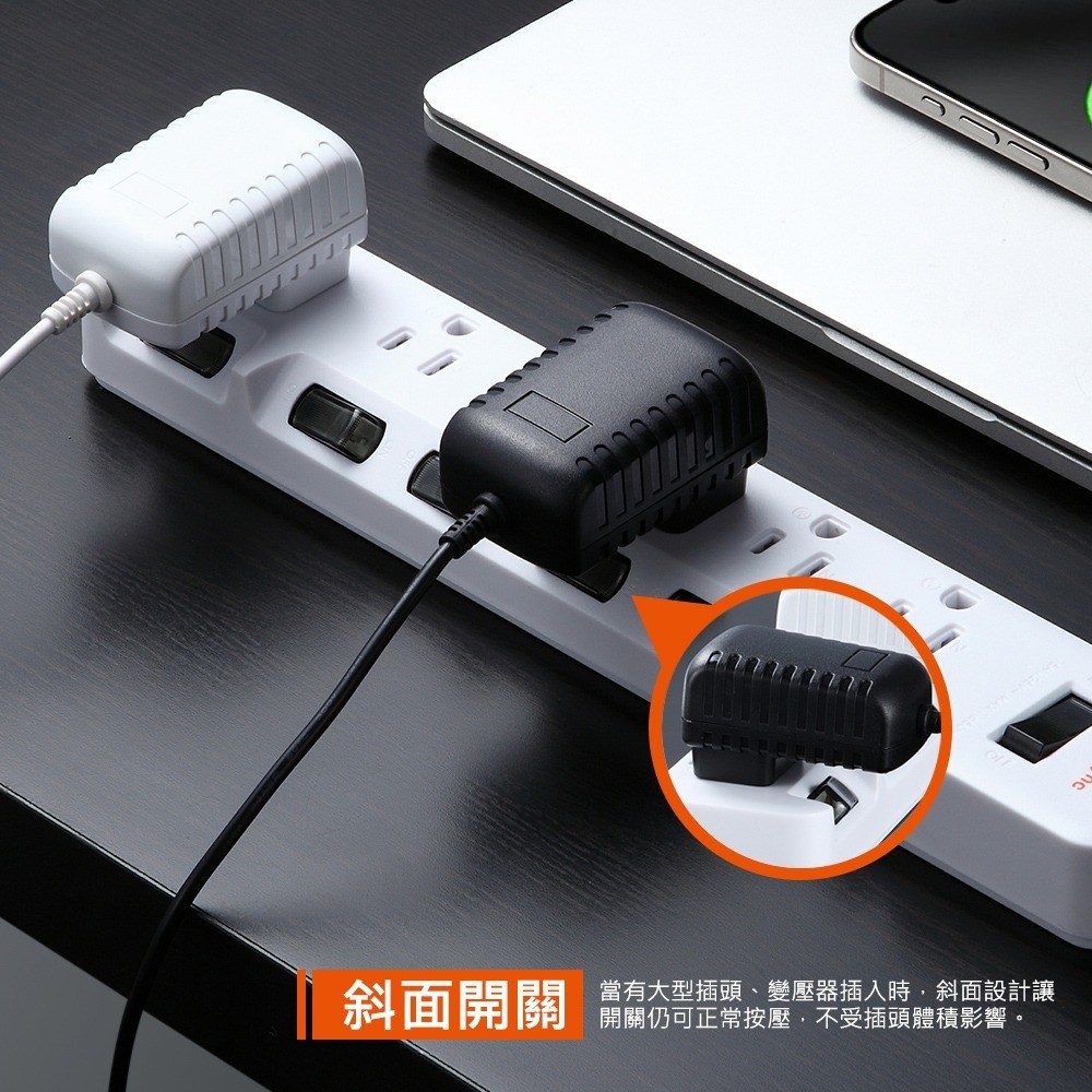 - 加大間距設計,輕鬆容納多種尺寸的充電器,不再擁擠,使用更加方便。