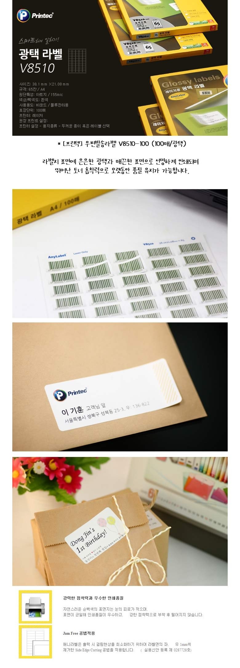 Printec Any 郵政物流光澤標籤紙 V8510-100, 65格, 300個