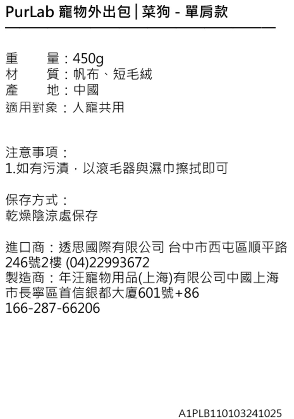 - 輕巧單肩設計,方便主人攜帶,讓寵物外出更加輕鬆自在無負擔。
