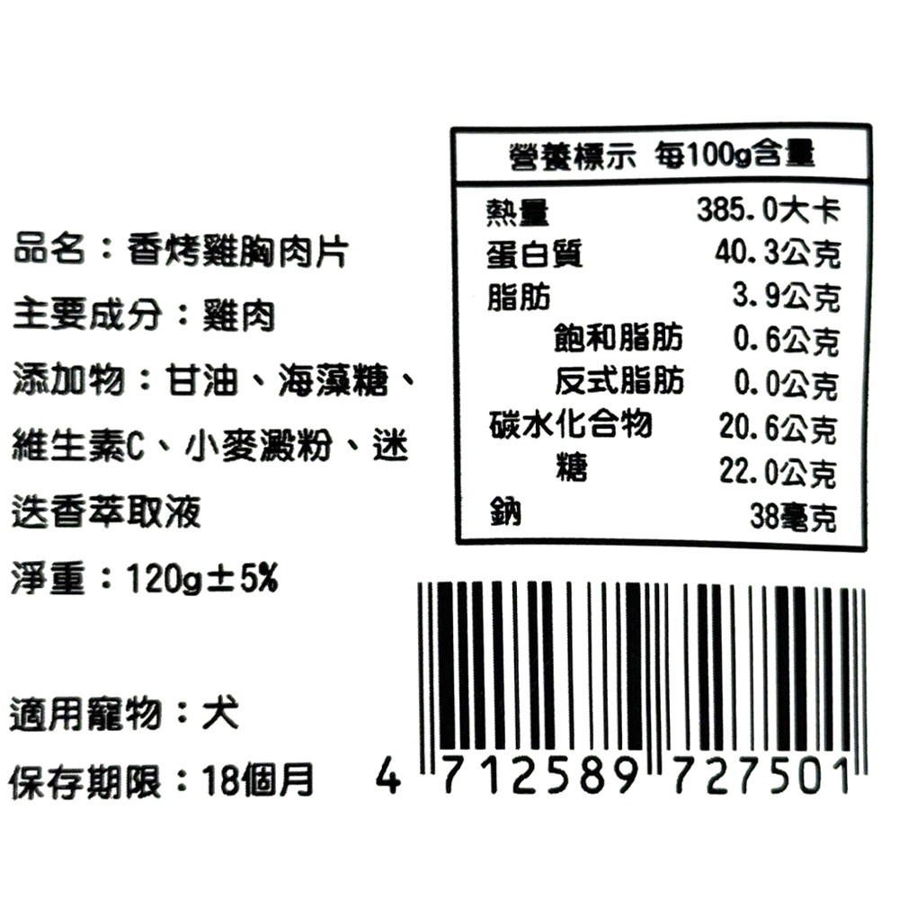 Qt baby 犬用寵物肉乾分享包 QT-137 香烤雞胸肉片 美味活力 新鮮肉品製成, 120g, 1包