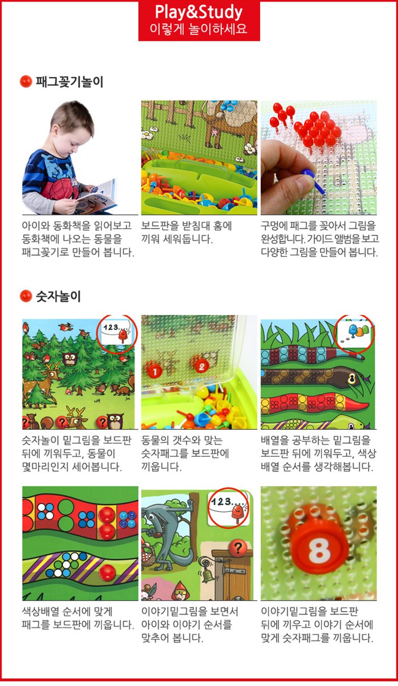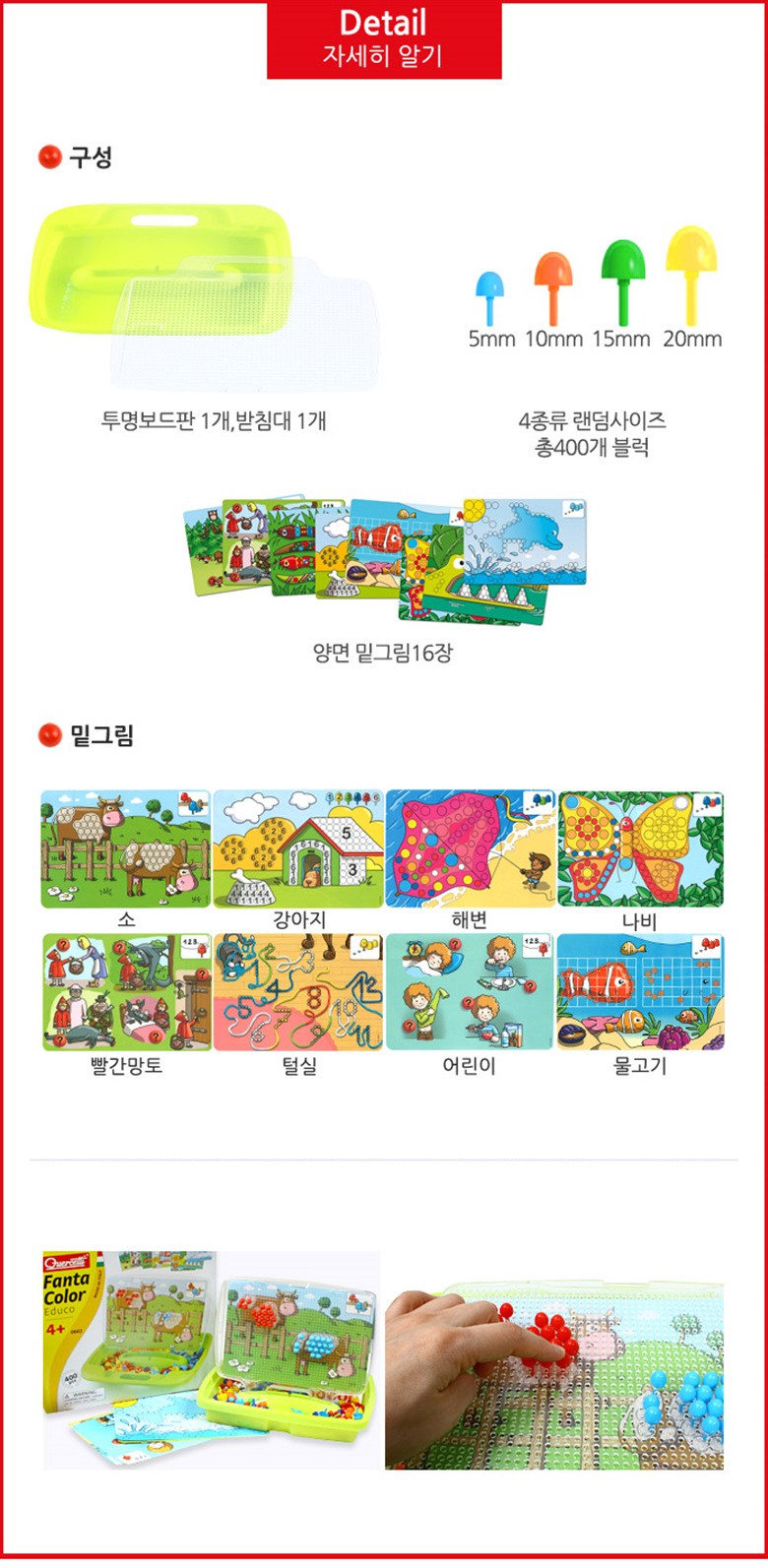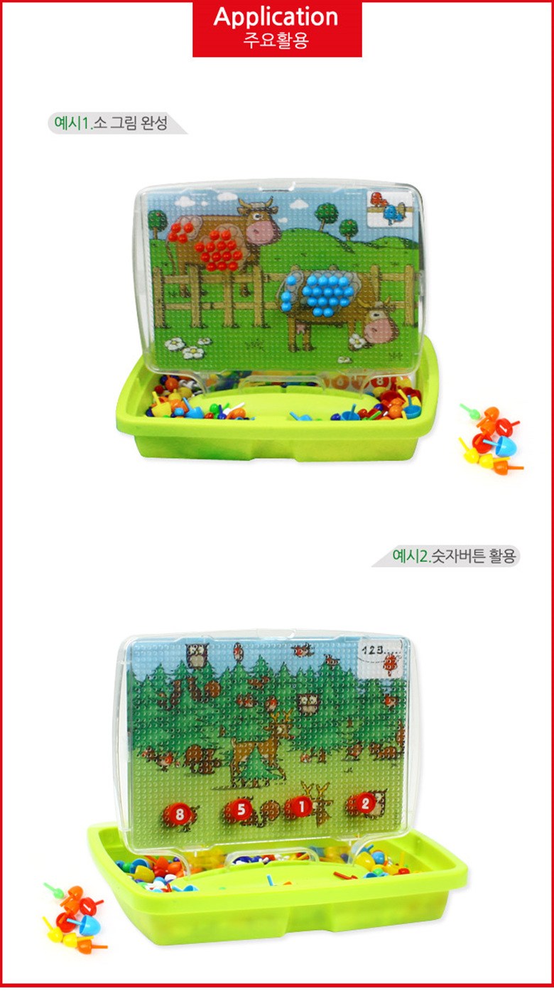 - 단추 블록을 투명 보드판에 꽂아 놀이
