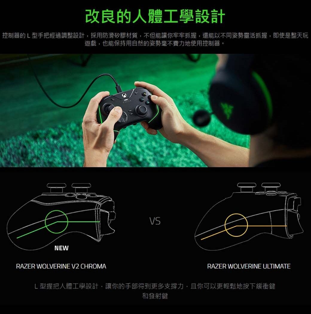 Razer Wolverine V2 CHROMA PC+XBOX有線控制器是一款專為遊戲玩家設計的高性能手把。它採用人體工學設計,確保長時間遊戲的舒適度,減少手部疲勞。配備可自訂RGB燈光效果,讓玩家打造個人專屬的遊戲氛圍。按鍵反應靈敏迅速,提供精準的操控體驗,讓您在遊戲中佔盡優勢。有線連接確保穩定的訊號傳輸,避免無線干擾,提供流暢的遊戲體驗。同時,它還支援PC和XBOX雙平台,滿足不同遊戲需求。