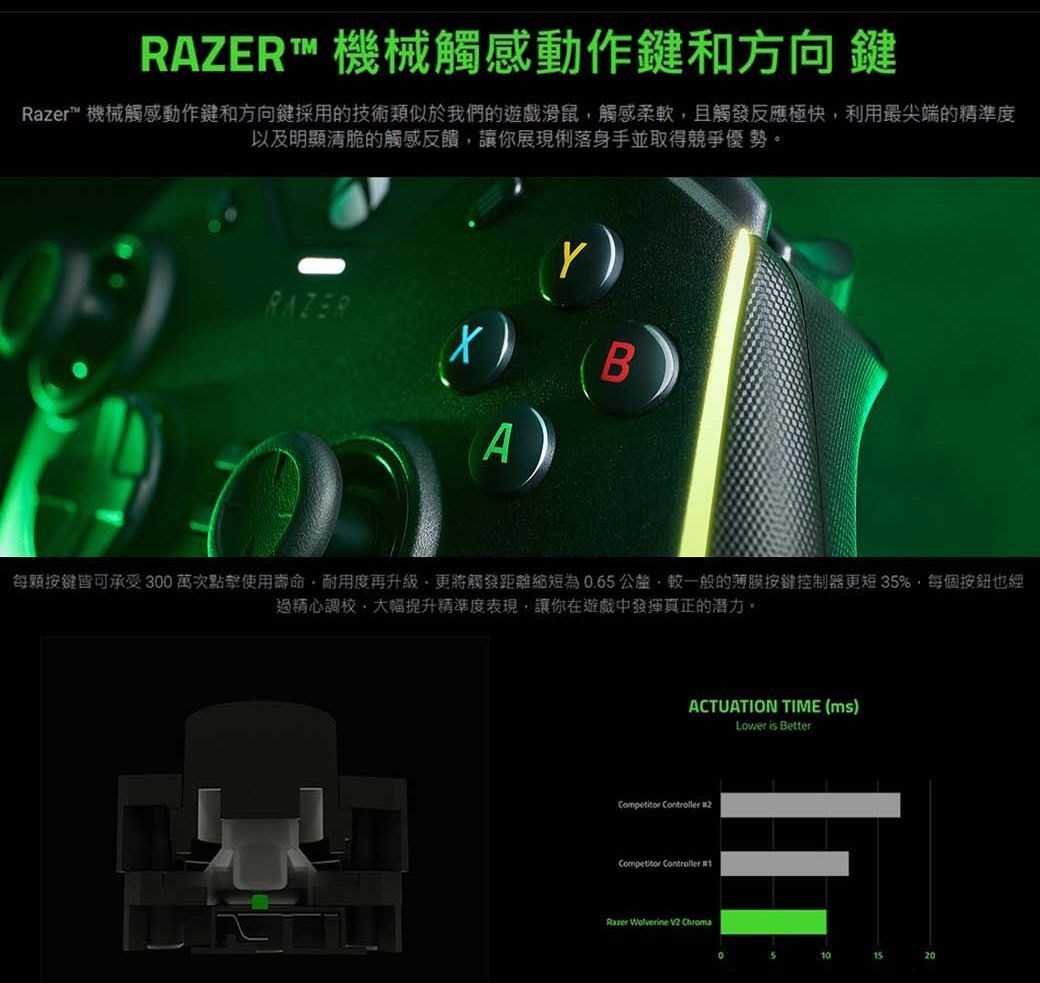 ・RAZER™ 機械觸感動作鍵和方向鍵,提供精確控制