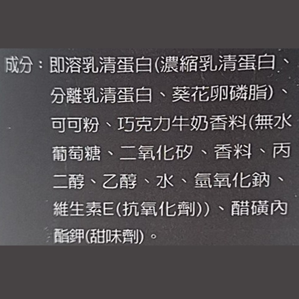 - 可可風味乳清蛋白,口感滑順,讓您在健身的同時,也能享受美味,擺脫乏味的蛋白飲。
