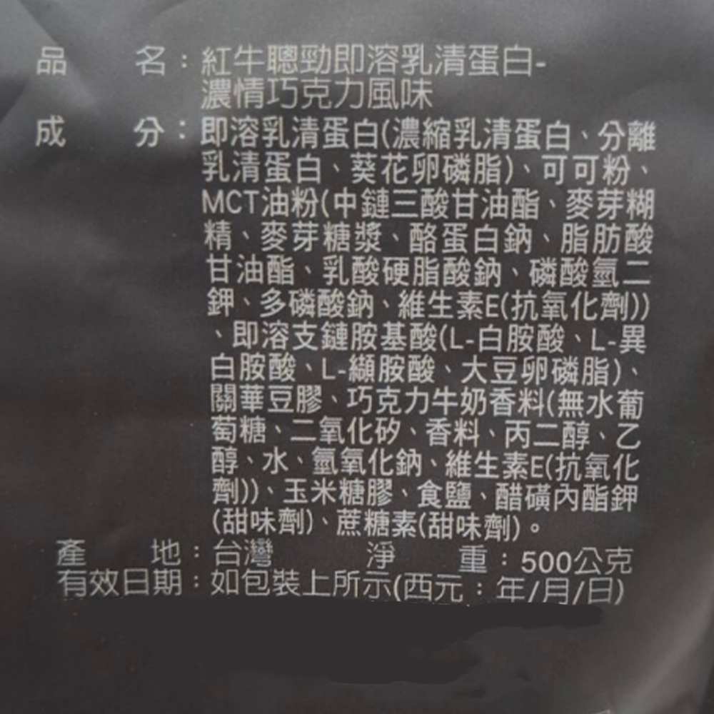 - 紅牛聰勁乳清蛋白,濃郁巧克力風味,讓您享受美味的同時補充蛋白質。