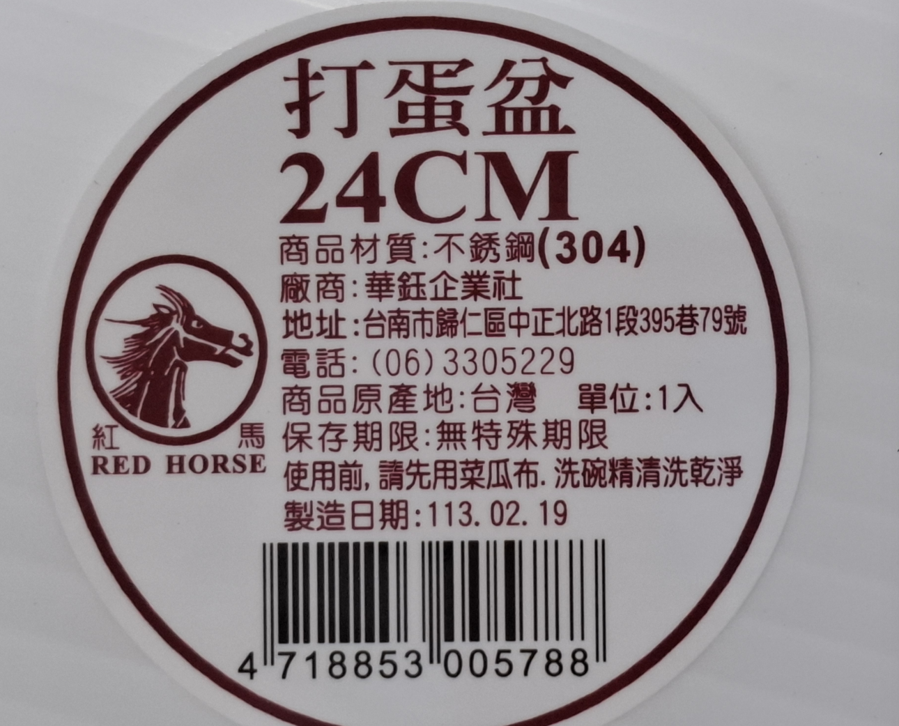 RED HORSE 紅馬 304不鏽鋼 打蛋盆 24CM, 1個