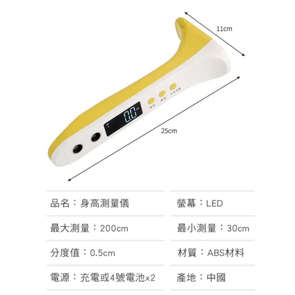 REQIR 電子身高測量儀 充電款, 黃色, 1個