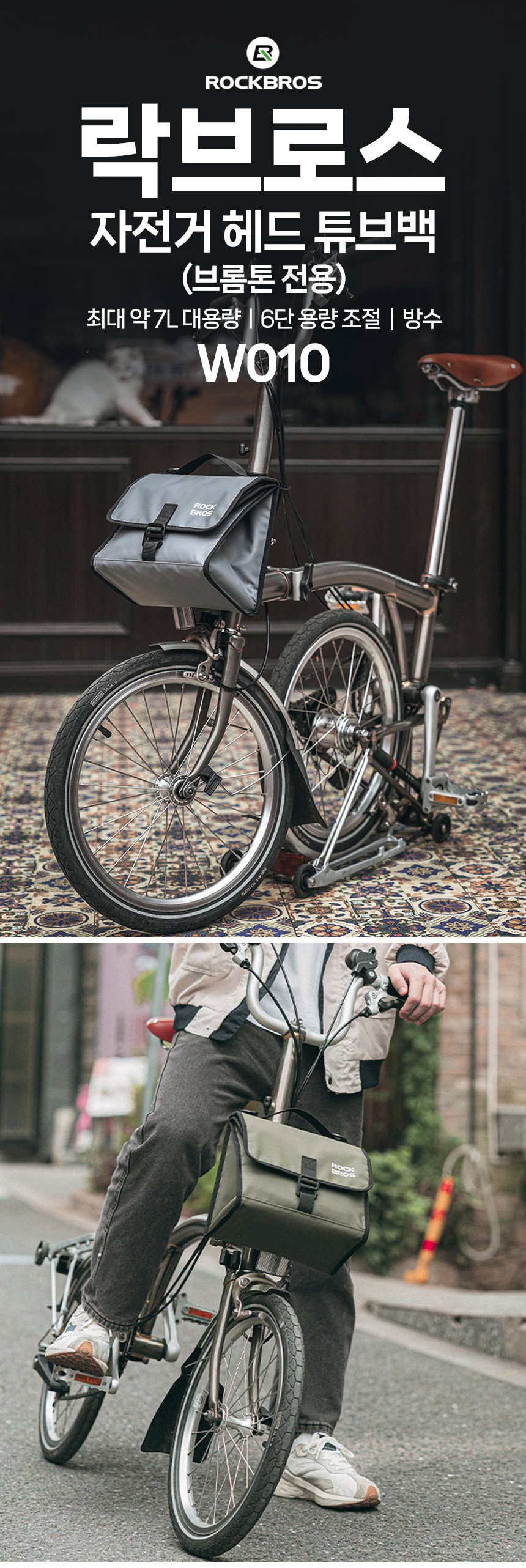 ROCKBROS洛克兄弟Brompton專用自行車頭管包,專為Brompton設計,採用耐用的PVC防水布料,有效保護您的物品免受雨水侵襲。內部採用鋁製保溫材料,讓您在旅途中也能享用保溫的餐點。這款頭管包具有六段容量調節功能,最大容量可達7L,方便您根據需求調整收納空間。此外,它還配備可調節肩帶和手提握把,方便您在日常生活中使用。堅固的轉接器安裝設計,確保包包在騎行過程中穩固可靠,讓您安心享受騎行樂趣。