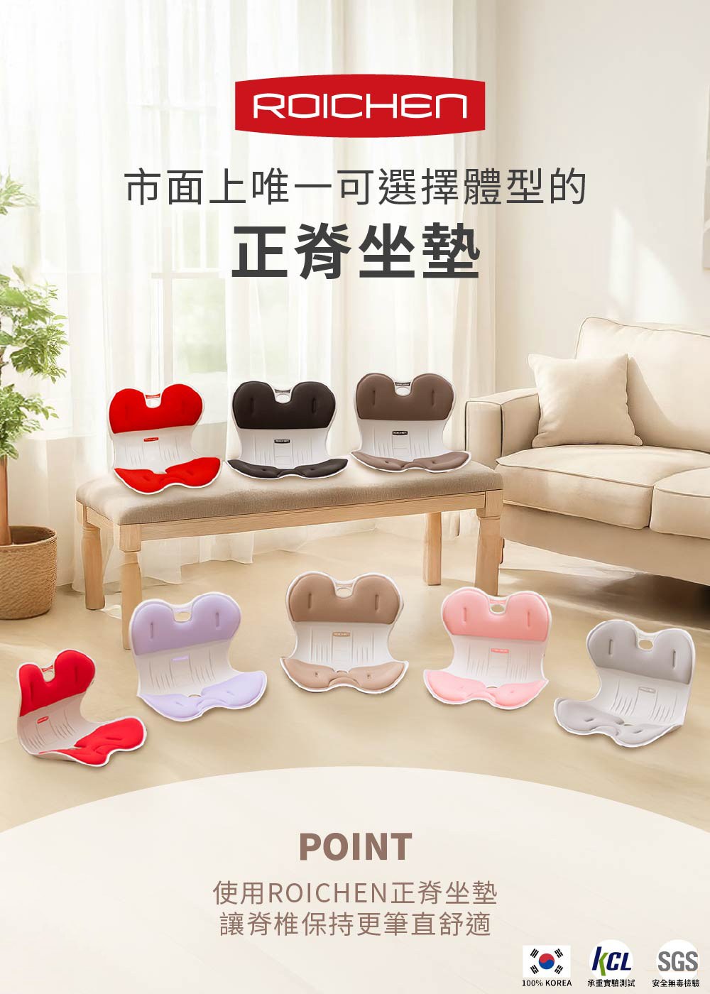 ROICHEN 減壓正脊坐墊專為女性設計,提供卓越的舒適度和支撐力,助您保持正確坐姿,舒緩壓力。這款紅色坐墊採用高品質聚酯纖維和塑膠合成樹脂製成,尺寸為40.3*31.5*31.5公分,重量僅670克,輕巧便攜。獨特的造型設計能有效分散壓力,減輕脊椎負擔,讓您在工作或休息時都能享受舒適體驗。韓國製造,品質保證,是您呵護脊椎健康的理想選擇。