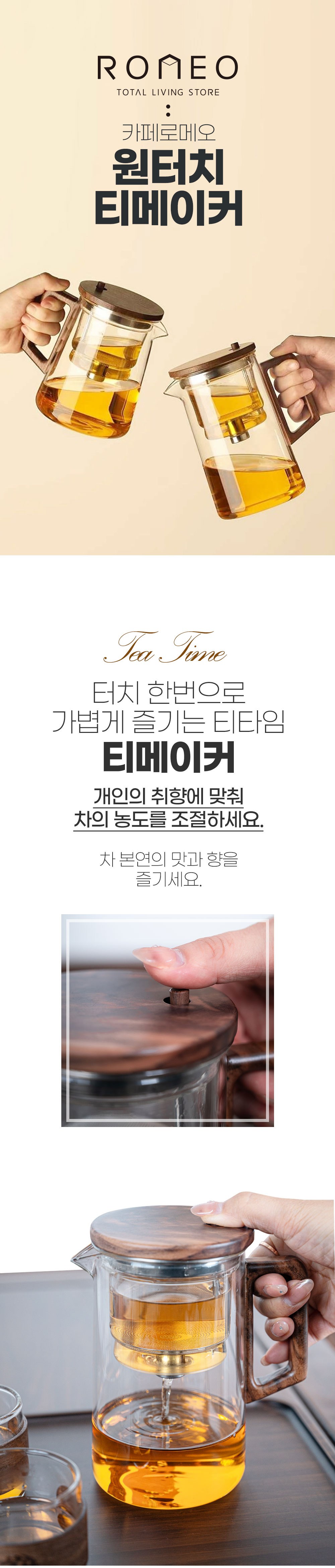 ROMEO一鍵式茶葉製造機,為您帶來全新的泡茶體驗。告別傳統繁瑣的泡茶步驟,只需輕輕一按,即可輕鬆享受一杯香醇好茶。採用耐熱玻璃與不鏽鋼材質,安全衛生,讓您使用。三合一設計,結合濾網、茶壺與公道杯功能,簡化泡茶流程,讓您隨時隨地都能品嚐到茶的原始風味與香氣。無論是居家使用或辦公室品茗,都是您的最佳選擇。