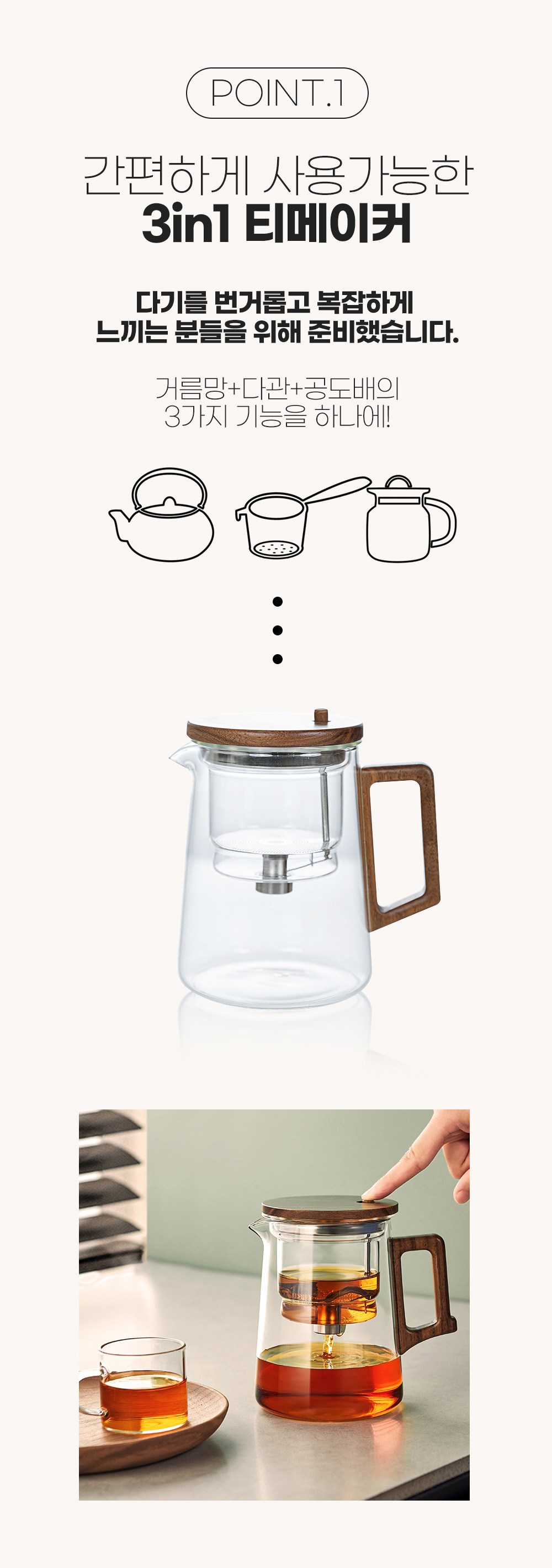 - 濾網、茶壺、公道杯三合一設計,簡化茶具,讓您輕鬆體驗專業級的泡茶樂趣。