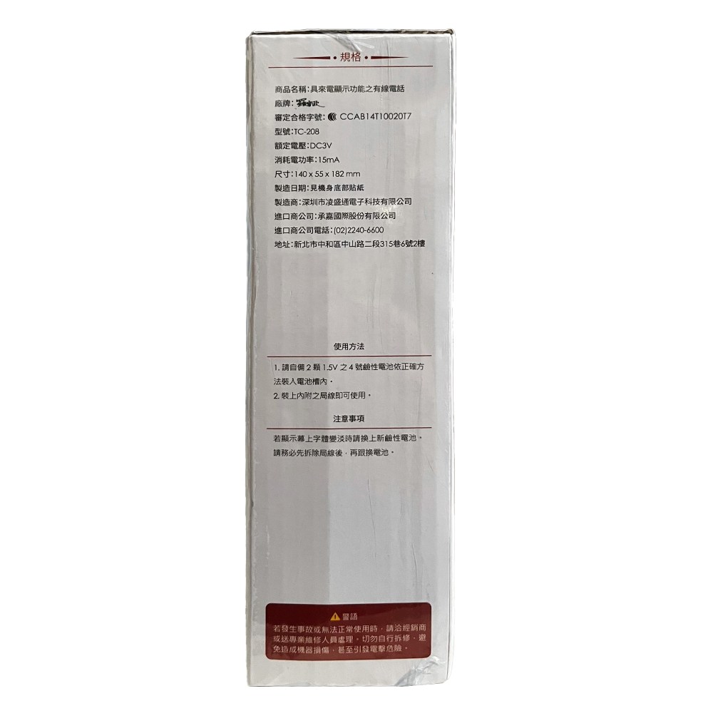 羅蜜歐來電顯示有線電話TC-208N,是一款功能齊全、操作簡便的家用電話。它具備來電顯示功能,讓您隨時掌握來電資訊,避免騷擾電話。大型數字按鍵設計,方便長輩或視力不佳者使用。此外,它還具備免提通話功能,讓您在忙碌時也能輕鬆接聽電話。外型簡約大方,精緻小巧,可壁掛設計,節省空間,顏色隨機出貨,為您的居家生活增添色彩。