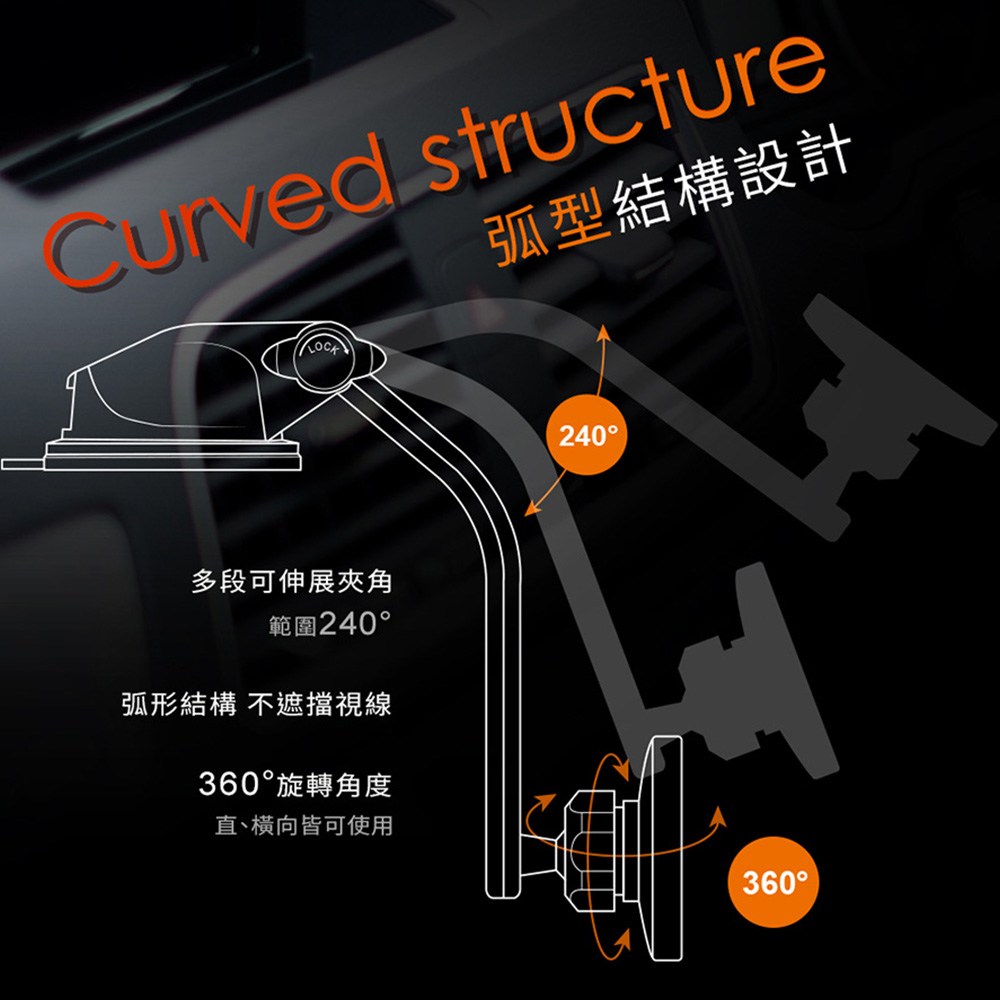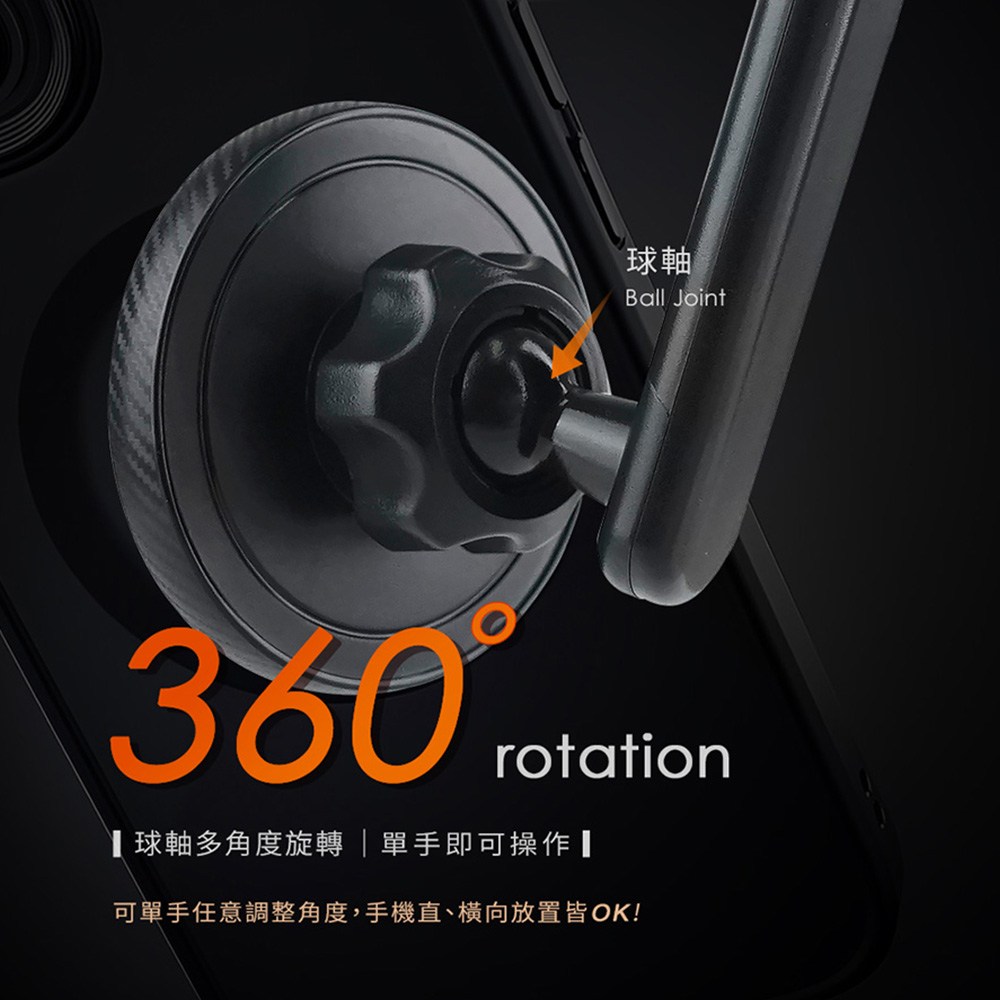- 360度旋轉球體設計,自由調整手機角度,提供最佳視野,導航更清晰。