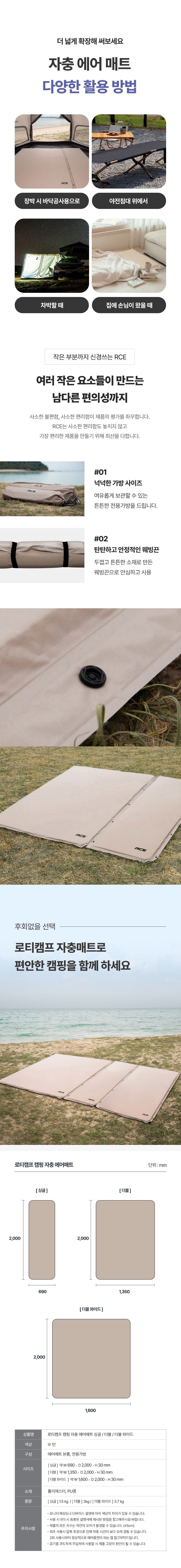 RCE露營自動充氣床墊讓您輕鬆享受戶外睡眠。告別傳統氣墊床的充氣煩惱,只需打開氣閥,床墊即可自動充氣,節省時間與精力。單人尺寸設計,方便攜帶與收納,適合露營、車宿或居家使用。獨特的無限擴展功能,可隨時連接多個床墊,滿足不同人數的需求。採用三層材質,兼顧耐用性與舒適性,讓您在戶外也能擁有舒適的睡眠體驗。通過安全測試,無有害物質,讓您使用。
