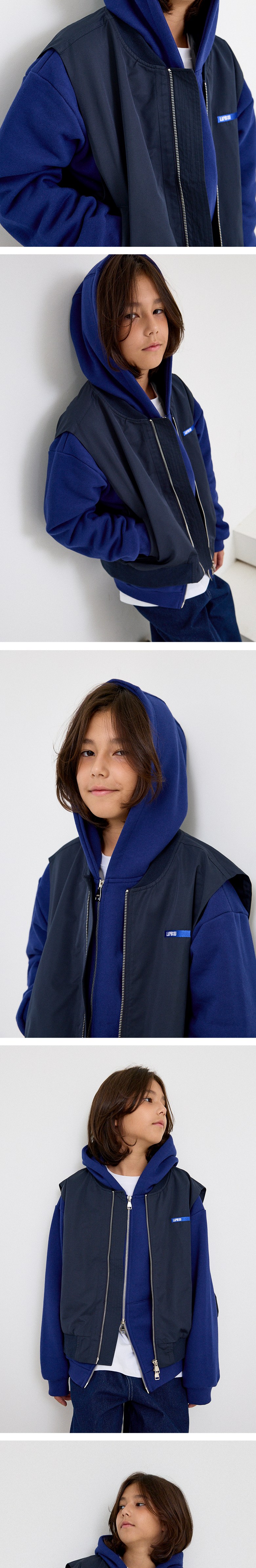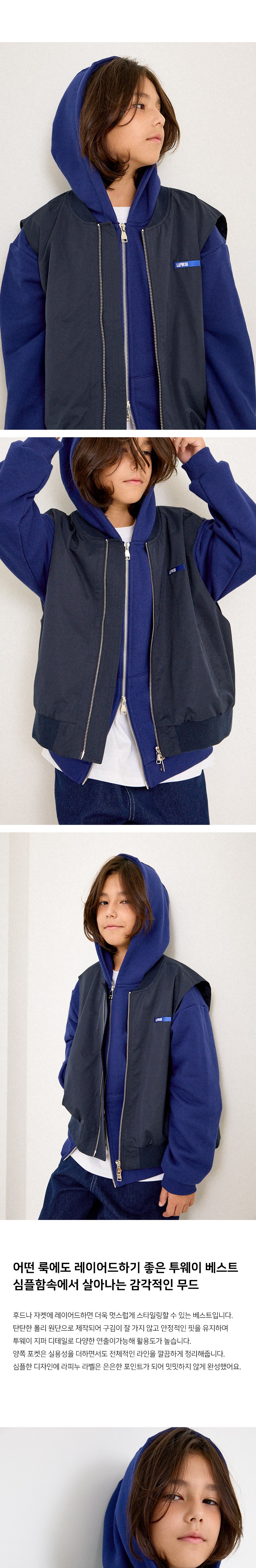 - 這款海軍藍背心採用雙向拉鍊設計,讓孩子穿脫更方便,活動自如不受限。