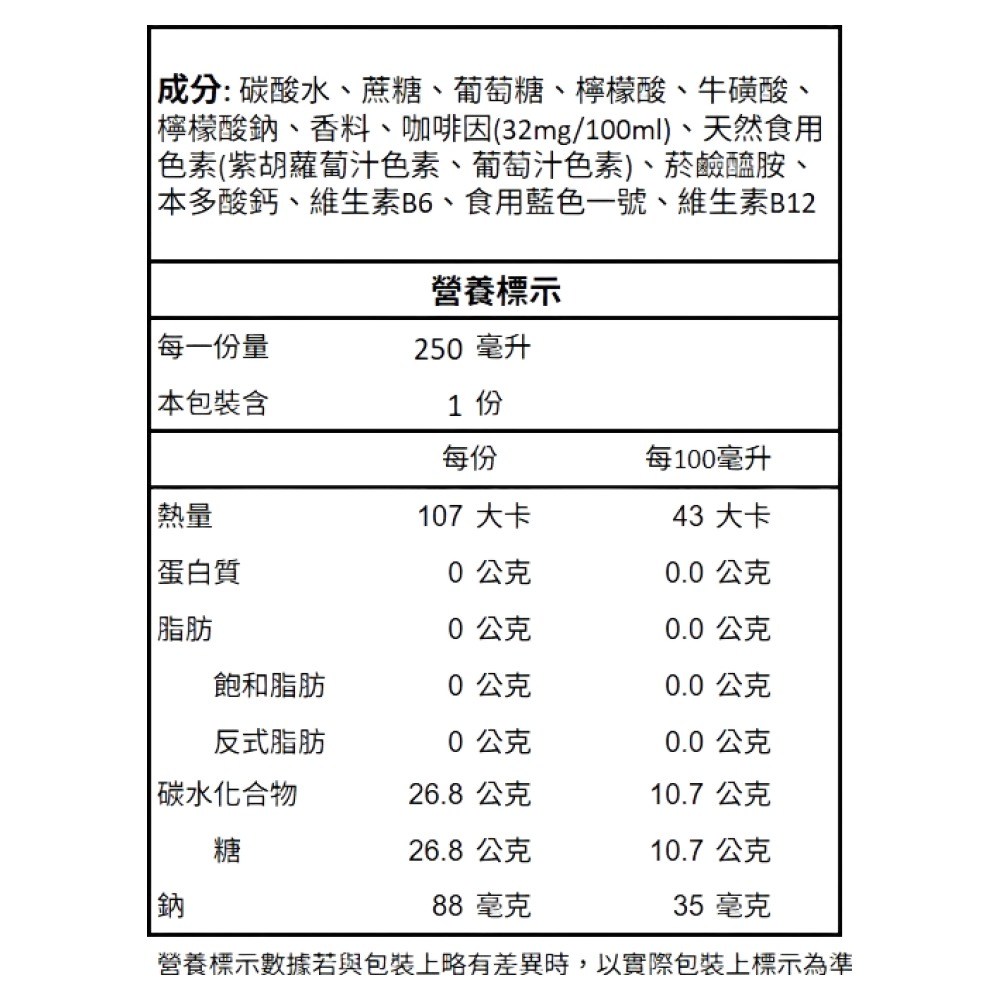 - 葡萄風味能量飲,能迅速補充能量,讓您在忙碌的生活中保持最佳狀態。