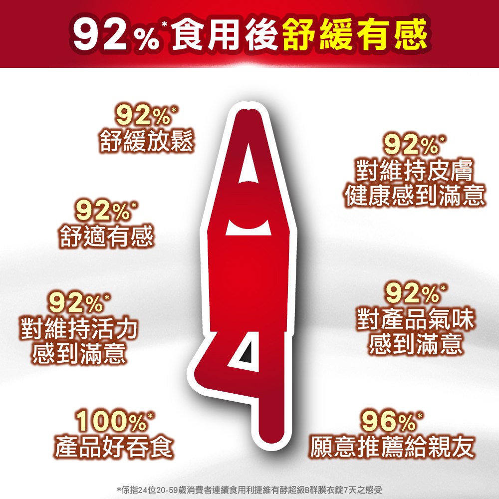 - 利捷維有酵B群,維持能量正常釋放,告別疲勞,讓您每天都充滿活力與朝氣,精神旺盛
