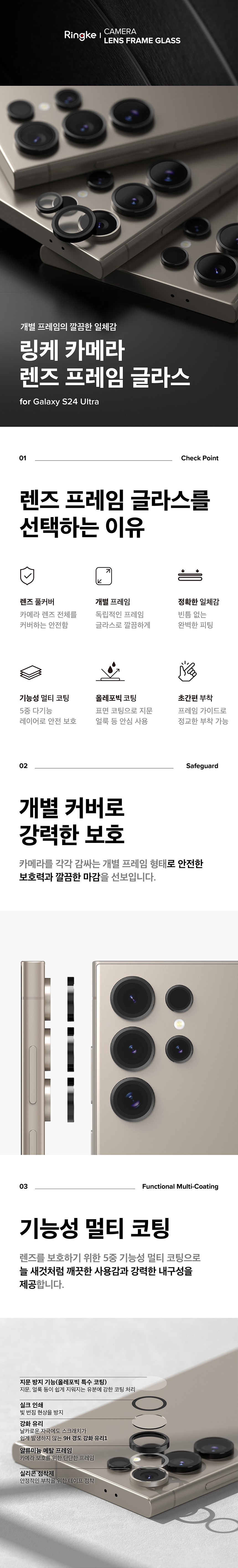 Ringke相機鏡頭框架玻璃專為Galaxy S24 Ultra設計,提供卓越的保護和時尚外觀。獨立框架設計不僅簡潔,還能完美貼合手機鏡頭,提供全面的保護,防止刮痕和汙漬。多層鍍膜技術確保鏡頭清潔,具備疏油塗層,輕鬆擦拭指紋和油汙。安裝簡易,使用導引框即可精準貼合。高透光率不影響拍攝品質,讓您享受清晰生動的畫質。Ringke鏡頭保護貼是保護您手機鏡頭的最佳選擇。
