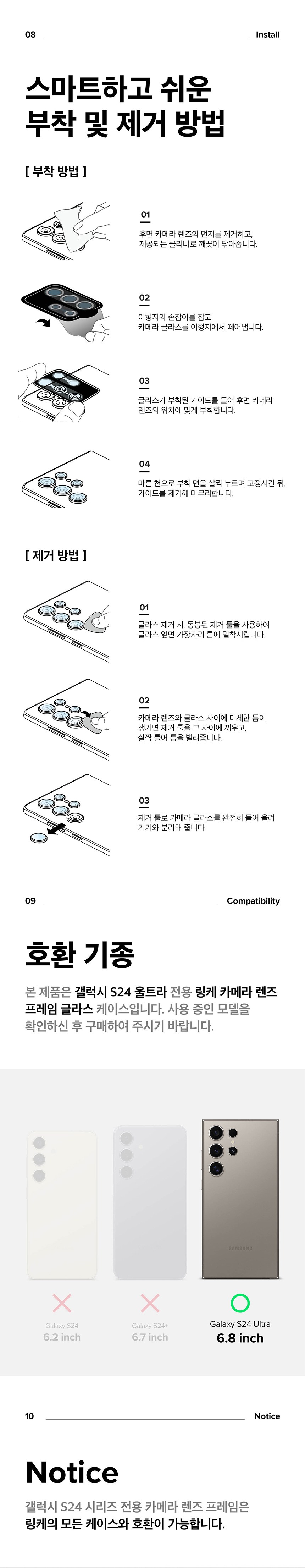 - 鏡頭框架玻璃提供完整覆蓋,有效保護Galaxy S24 Ultra的相機鏡頭免受刮損和撞擊。