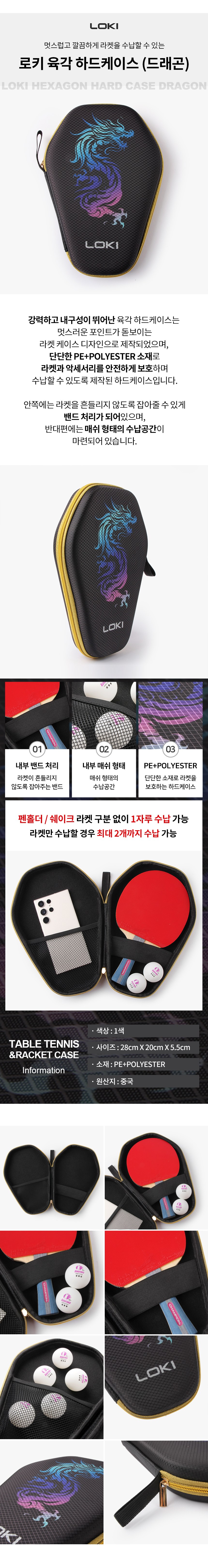 LOKI 六角硬殼龍乒乓球拍收納包是一款兼具時尚與實用的球拍保護套。採用堅固的 PE+POLYESTER 材質製成,提供卓越的保護,讓您的球拍免受損壞。內部設計有固定帶,可防止球拍晃動,另一側則設有網狀收納空間,方便您整理乒乓球及其他配件。不分直拍或橫拍,此收納包最多可收納兩支球拍,是乒乓球愛好者的理想選擇。尺寸為 28cm X 20cm X 5.5cm,輕巧便攜。