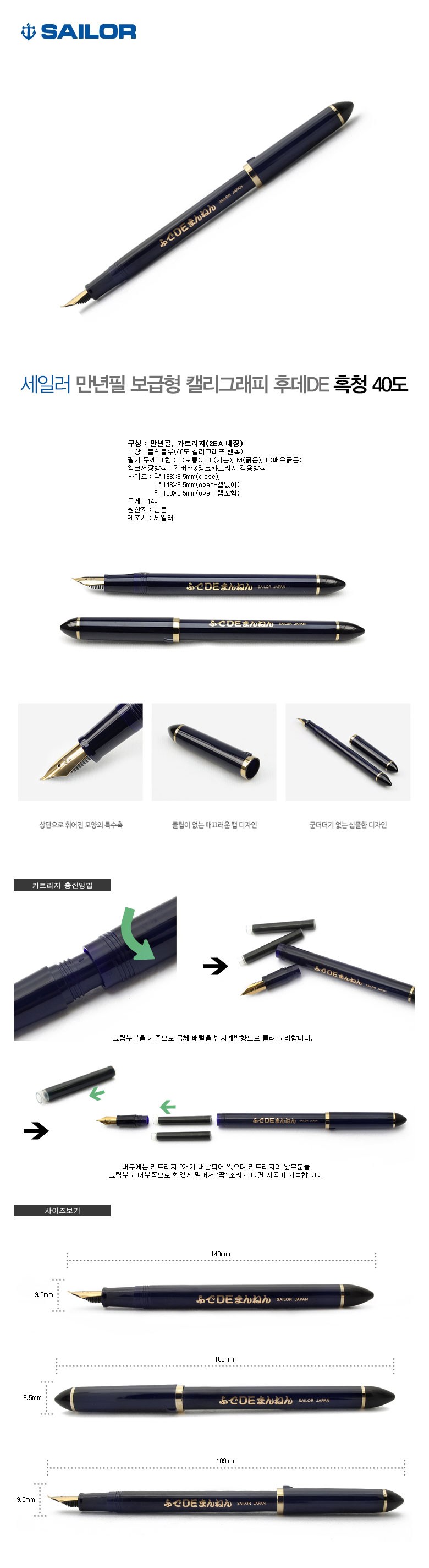 SAILOR 寫樂 入門級書法連帽衫 DE 40 度鋼筆, 中頻, 黑藍