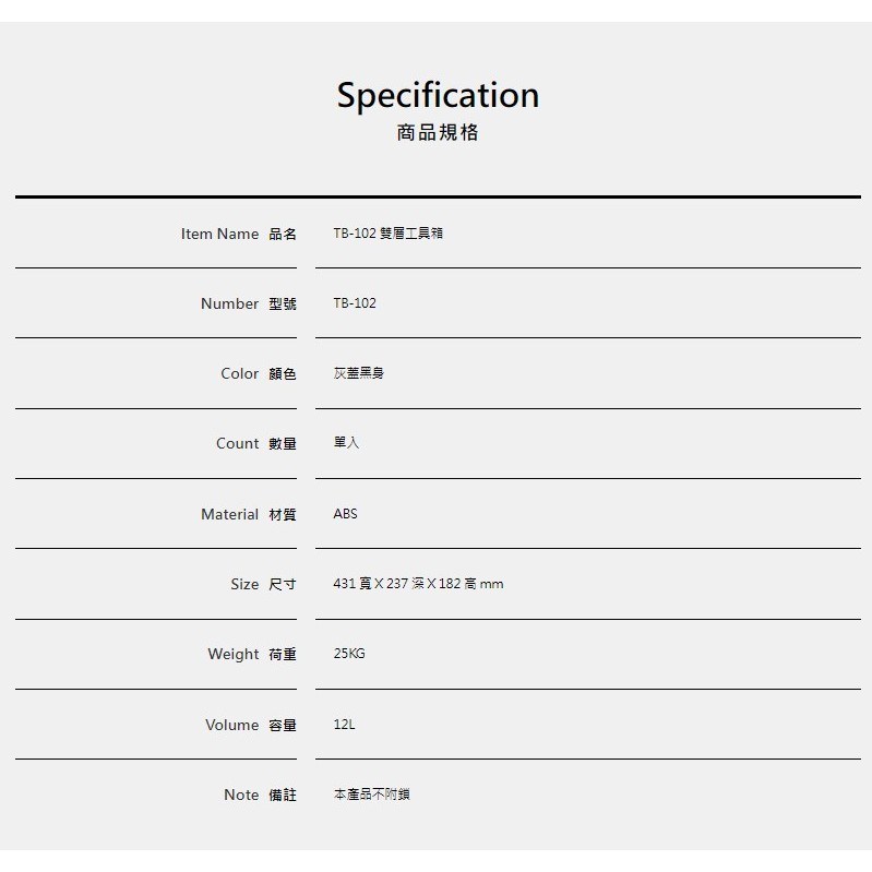 - 寬敞內部空間設計,方便整理各式工具,讓您工作效率倍增。