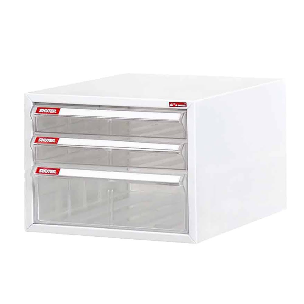 SHUTER 樹德 A4桌上型樹德櫃是辦公室或居家空間的理想收納解決方案。這款白色三層櫃不僅外觀簡潔時尚,更能有效整理您的文件和文具,讓桌面保持整潔有序。採用優質鍍鋅鋼板和塑膠材質,確保耐用性和穩定性,讓您長期使用無憂。透明抽屜設計方便您快速找到所需物品,提升工作效率。無論是辦公室文件歸檔還是居家物品整理,SHUTER 樹德櫃都能滿足您的需求,為您打造一個高效舒適的工作環境。