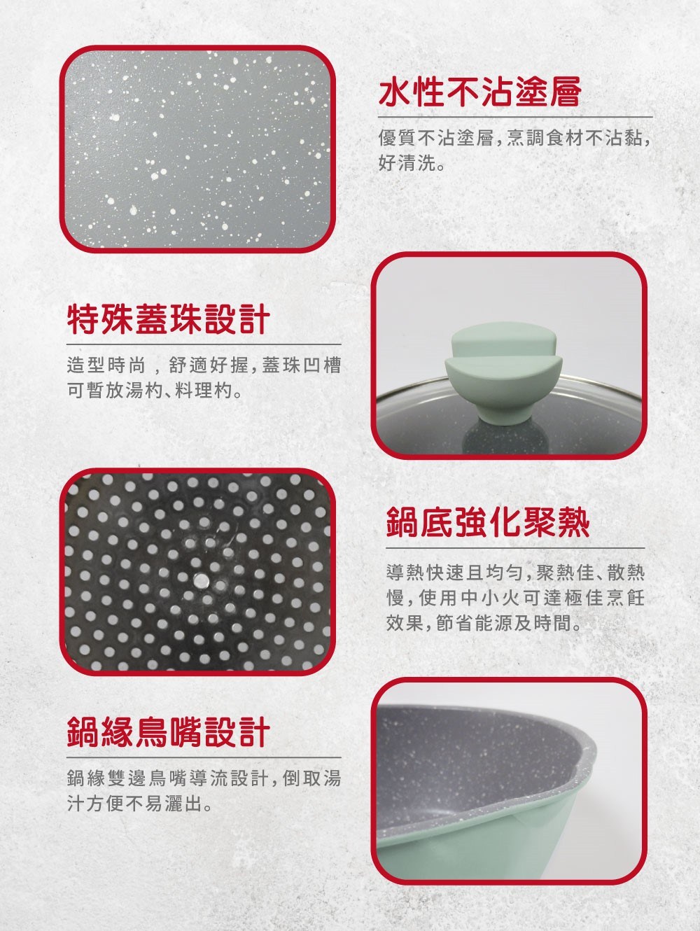 - 導熱快速且均勻,縮短烹飪時間,讓您快速上菜,輕鬆享受美味佳餚。