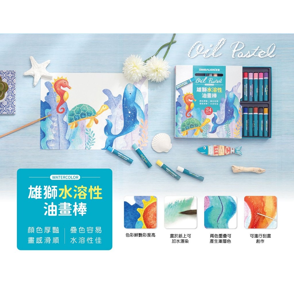 - 雄獅水溶性油畫棒,色彩鮮明飽和,輕鬆繪製出層次豐富的藝術作品。